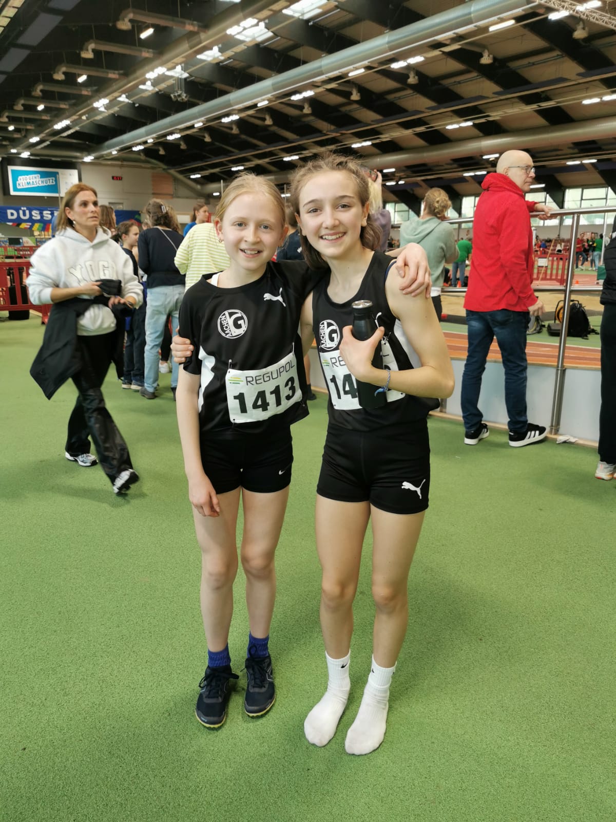 Ella Butz und Elisa Roussaint meisterten ihre ersten Nordrhein-Meisterschaften trotz großer Aufregung hervorragend. Über 60 m konnte Elisa im Vorlauf ihre Leistung auf 9,35 sec steigern. Ella stellte in ihrem Vorlauf eine neue persönliche Bestzeit von 9,02 sec auf und qualifizierte sich damit für das B-Finale, in dem für sie eine Zeit von 9,06 sec gestoppt wurde.