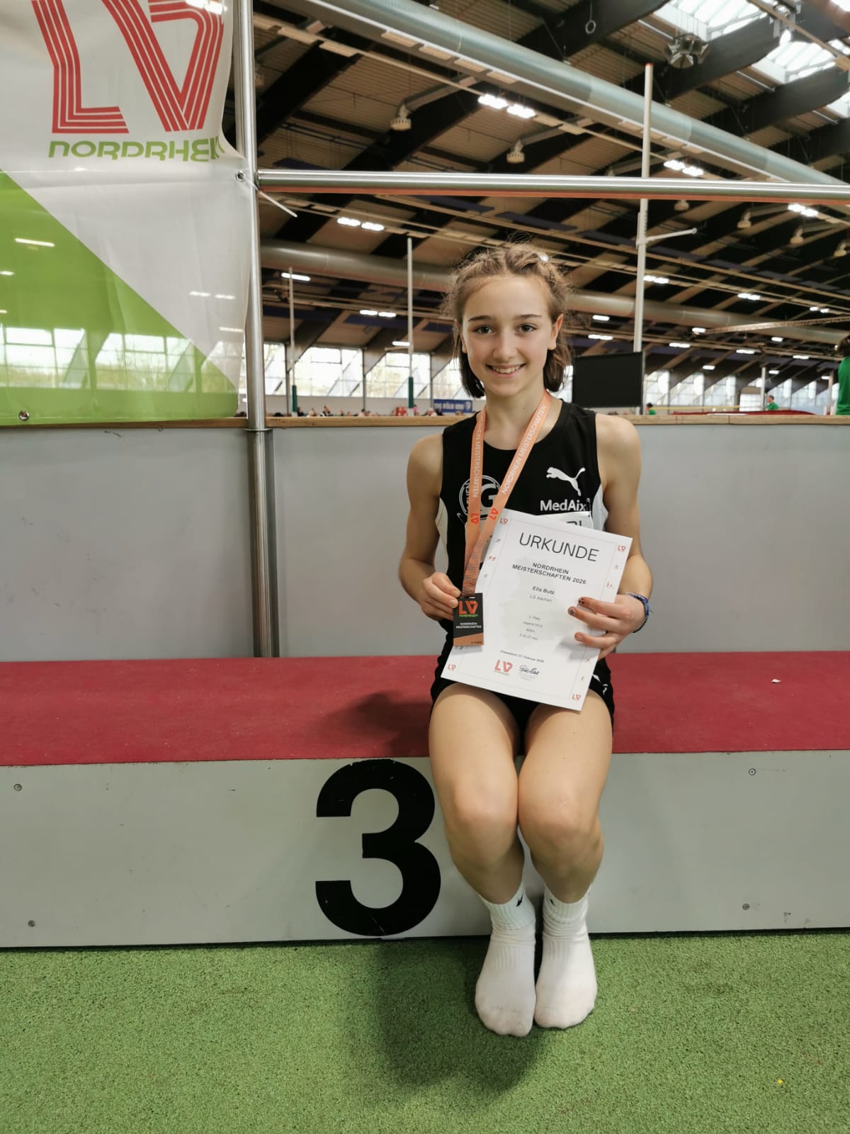Bei den Nordrhein-Meisterschaften U14/U16 sammelten die 18 Athletinnen und Athleten der LG Aachen in der Düsseldorfer Leichtathletikhalle zum Teil erste Meisterschaftserfahrungen auf höherer Ebene, zeigten durchweg gute bis sehr gute Leistungen und stellten zahlreiche persönliche Bestleistungen auf. Darüber hinaus durften wir 1 x Gold, 1 x Silber und 2 x Bronze sowie weitere Platzierungen unter den besten Acht und einen Regionsrekord in der Halle bejubeln.