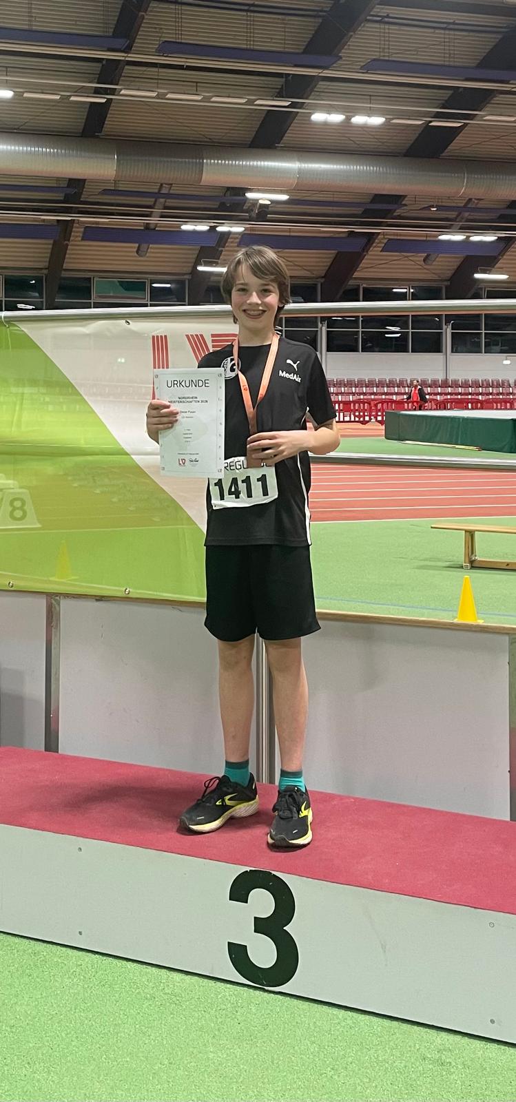 Oscar Faust startete erstmals über 60 m und erreichte 9,03 sec. Damit qualifizierte er sich für das B-Finale, in dem er sich auf 8,95 sec steigerte. Im Kugelstoß gelangen Oscar sechs Stöße über 9 m, wo bei der weiteste mit 9,76 m gemessen wurde, was Oscar den 3. Platz im Kugelstoß in seiner Altersklasse sicherte und zudem ein neuer Hallen Regionsrekord der M12 ist.