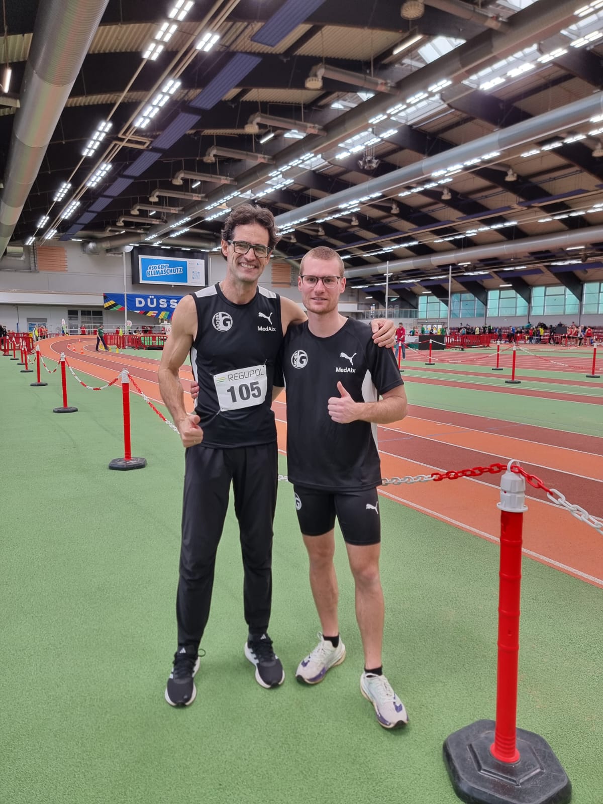 Dennis Schwartz belegte über 60 m mit guten 7,68 sec den 5. Platz. Über 400 m überraschte er mit der fantastischen Zeit von 53,27 sec und dem Nordrheinmeistertitel.