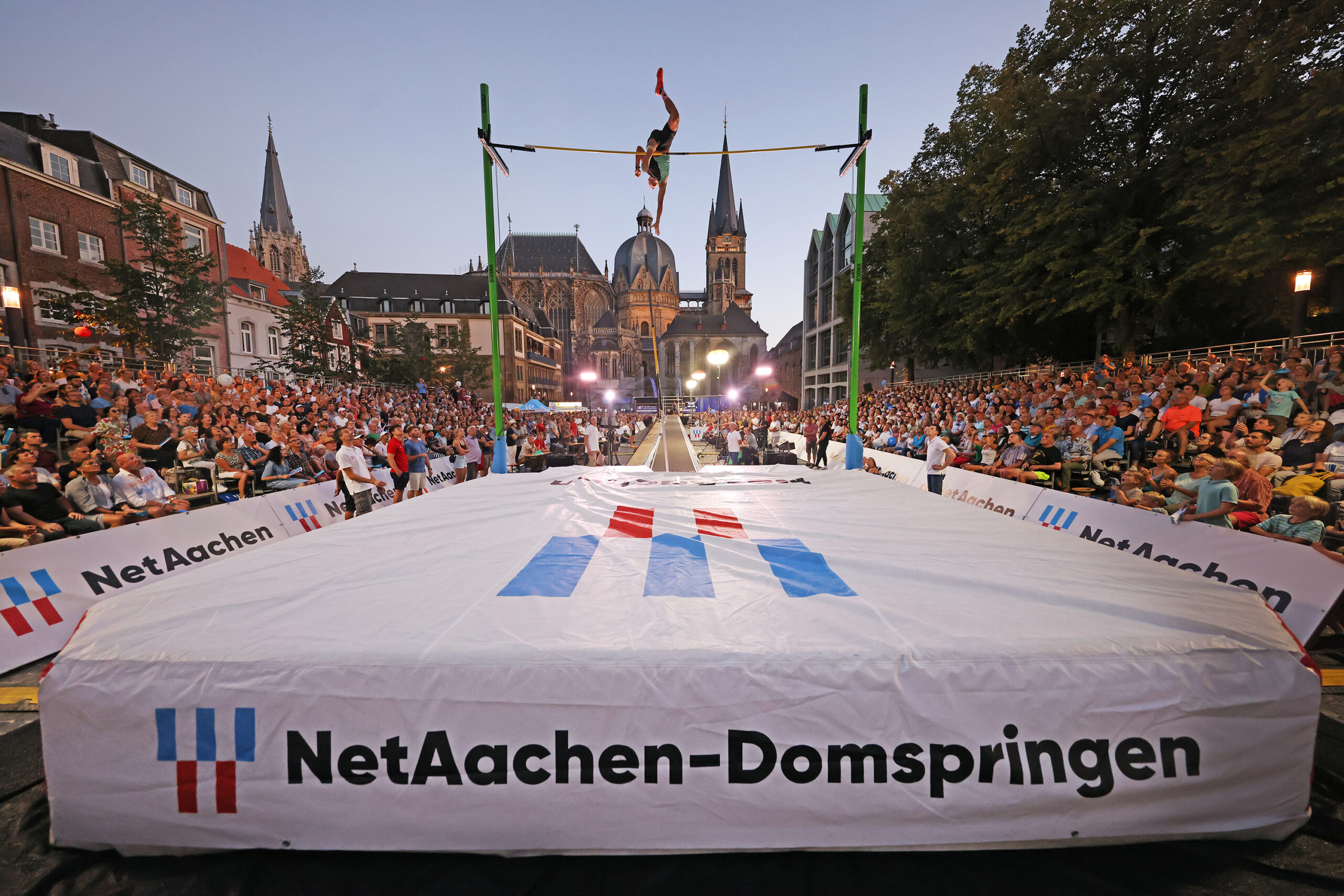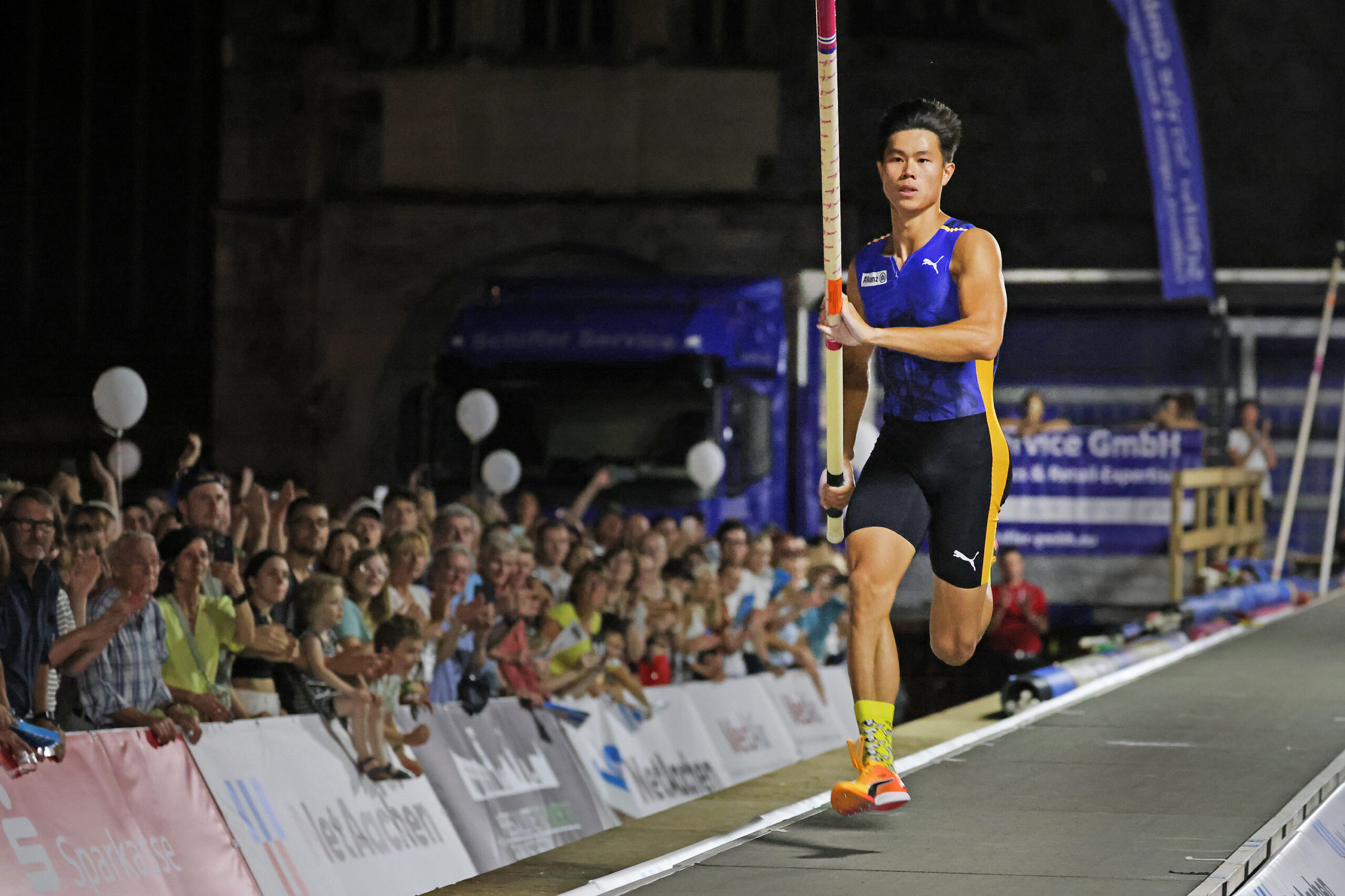 Nur einer sprang bislang in Aachen höher! Der Vize-Weltmeister Ernest Obiena siegte mit 5,92 m beim 18. NetAachen-Domspringen und unterstrich seine exzellente Form. Nur Björn Otto war 2012 ein höherer Satz auf dem Katschhof gelungen. Sein Meetingrekord von 6,01 Meter (gleichzeitig deutscher Rekord) behält also weiter Bestand – auch wenn er noch nie so ins Wackeln kam wie heute. Gleich fünf Versuche über 6,02 Meter bekamen das Publikum und Björn Otto, der heute vor Ort war, geboten. Neben dem späteren Sieger versuchte sich auch der US-Amerikaner Sam Kendricks noch an dieser Höhe, die letztlich unbezwingbar blieb. „Ich wollte die 6,02 Meter unbedingt hier bei dieser großartigen Atmosphäre springen, aber heute hat es leider nicht gereicht. Ich möchte auf jeden Fall im nächsten Jahr wiederkommen und es erneut versuchen“, sagte Obiena zu seiner Leistung. Für Kendricks standen am Ende 5,87 Meter zu Buche, die ihm den zweiten Platz brachten. Auf dem dritten Platz landete der Franzose Thibaut Collet, der ebenfalls in Top-Form, mit einem fünften Platz von der WM, nach Aachen kam. Er übersprang 5,82 Meter.