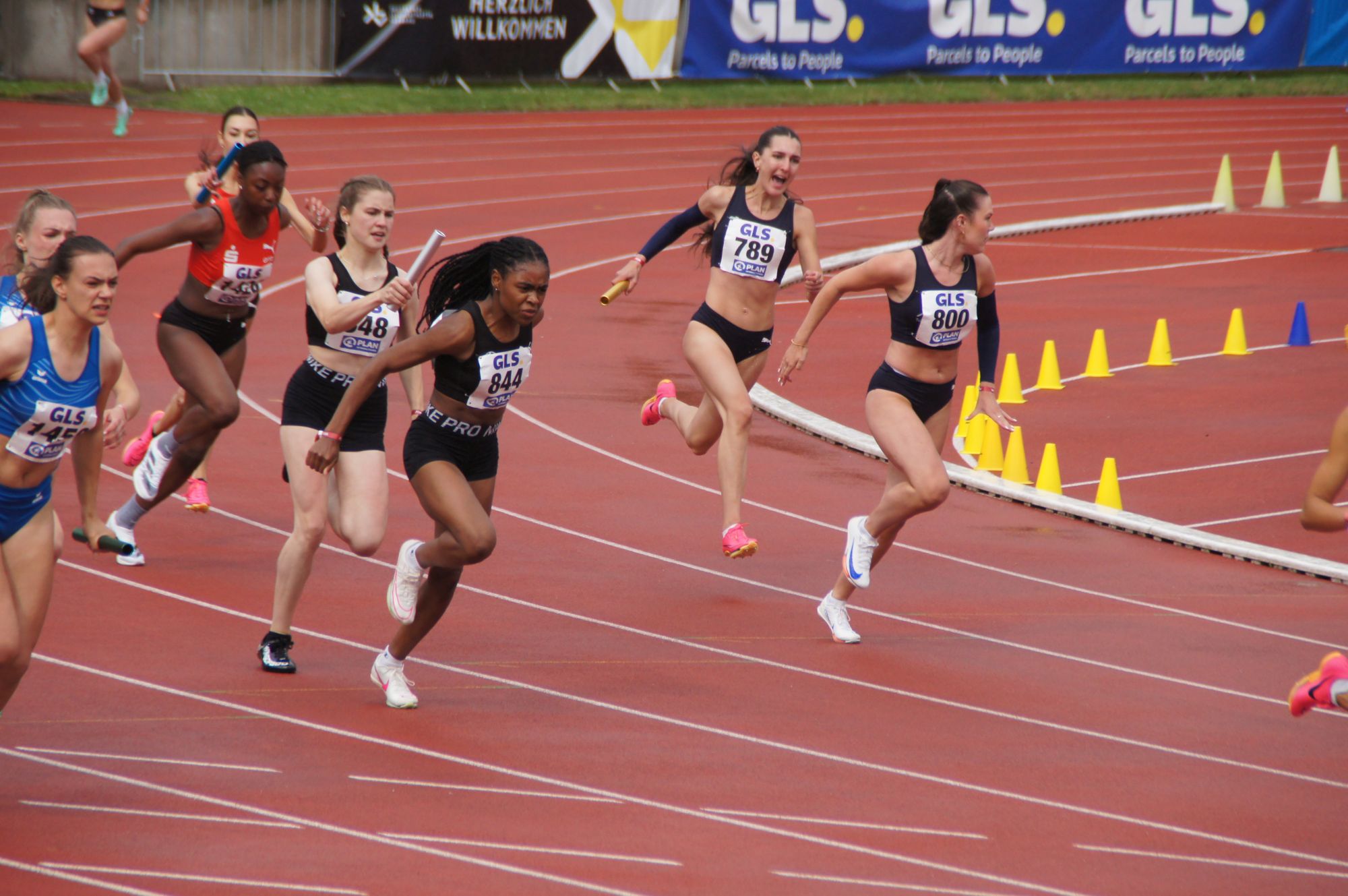 Gut platziert und mit allen Topläufer*innen besetzt und verstärkt (Danke an alle vier „Ersatzläufer*innen“ – an Luzie (Kunter), Hannah (Paulukuhn), Lasse (Laude) und Timon (Blatt)!!) bereiteten sich die Staffeln in dem relativ kleinen Aufwärmbereich auf den großen Auftritt vor. Gut, dass die Wechsel im Vorfeld schon gut eingeübt waren!