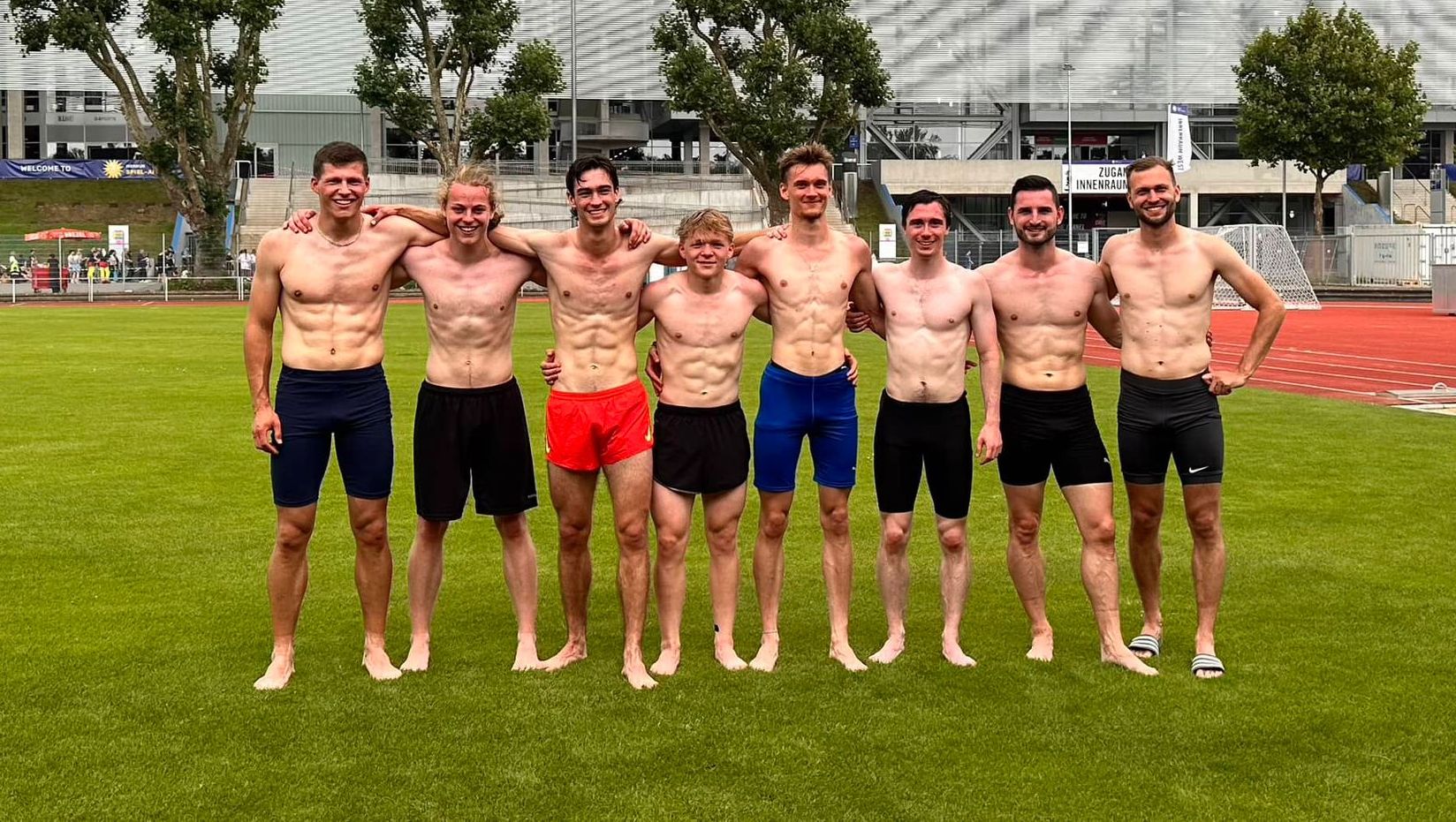 Im zweiten Anlauf hat es hingehauen für unseren Zehnkämpfer Till Rüdiger mit der Deutschen Qualifikationsleistung. Zum ersten Mal hat Till nun die Möglichkeit sich in 5 Wochen mit den besten deutschen Zehnkämpfern in Hannover am 24./25. August 2024 zu messen. Die Steigerung seiner Punktzahl hat er dabei seinen hervorragenden Bestleistungen im 400-m-Lauf (51,01s) im Stabhochsprung (4,00m) und im 1500-m-Lauf (4:31,72 min) zu verdanken. Dass er diese Leistungen bei sommerlichen Temperaturen jenseits der 30 Grad-Marke erzielte, ist umso erstaunlicher. Absolut glücklich und völlig ausgepumpt, fand sich Till nach seinem fulminanten 1500-m-Lauf (er verbesserte seine erst vor 5 Wochen aufgestellte PB um weitere 11 Sekunden) auf der Bahn liegend wieder und benötigte einige Minuten, um sich erneut in die vertikale Körperposition zu begeben. Till erkämpfte sich den Gesamtsieg mit einer Leistungssteigerung auf 6.164 Punkten.