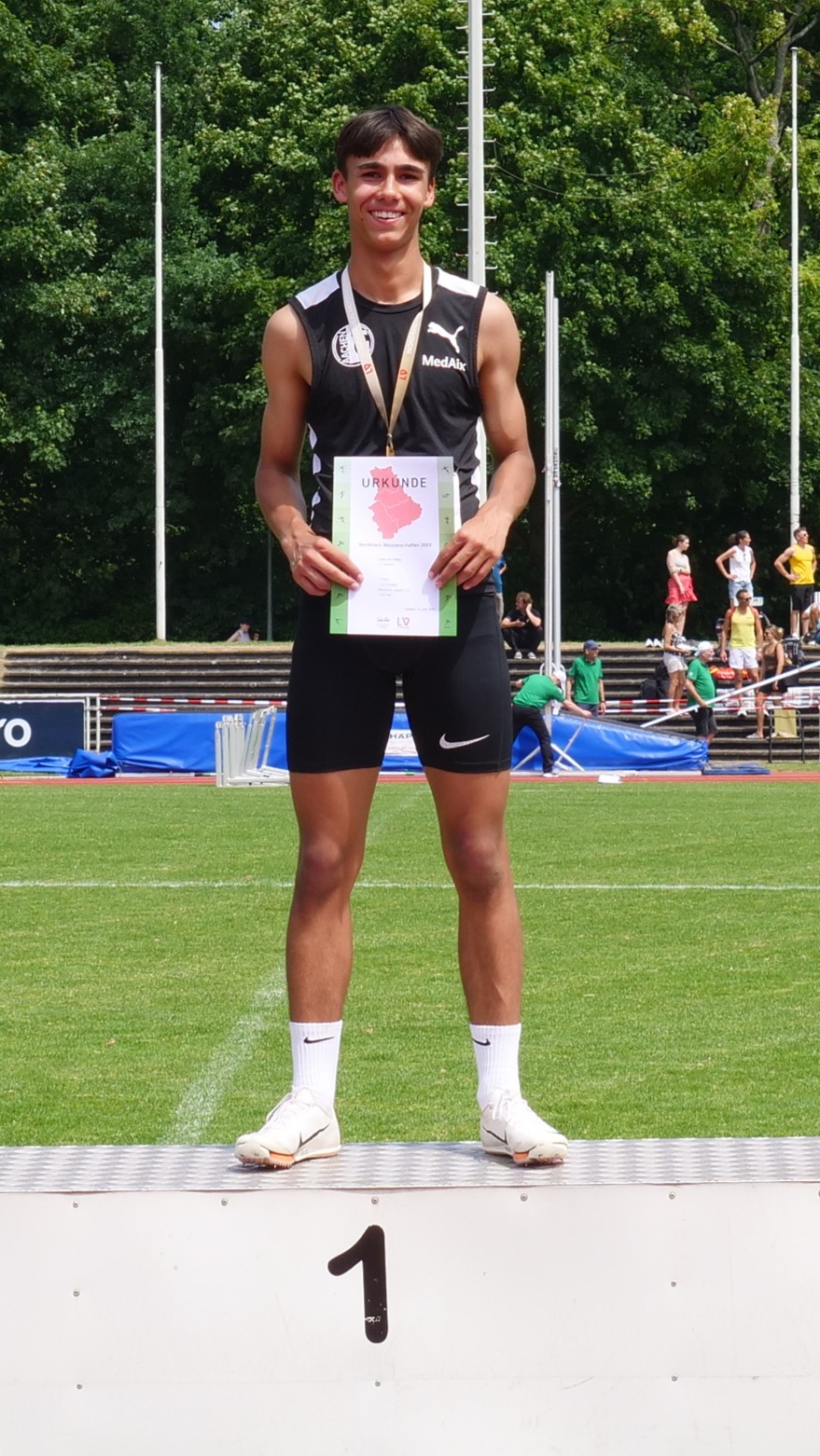 Herausragend war der Auftritt von Luke van Heiss über 110m Hürden. Nach einem schnellen Vorlauf (14,42 sek bei etwas zu viel Rückenwind) zog er souverän ins Finale ein und sicherte sich dort mit 14,59 sek und persönlicher Bestleistung den Titel Nordrheinmeister.